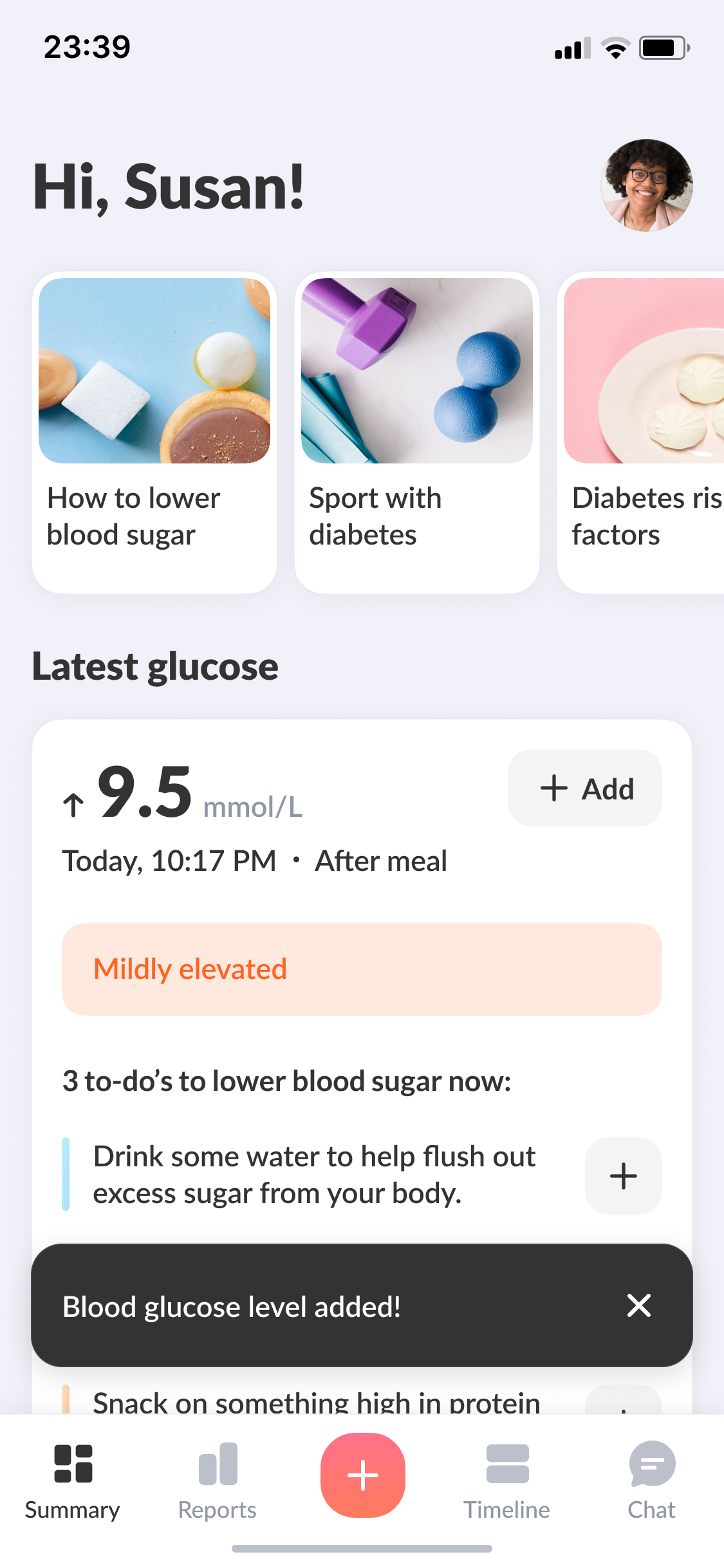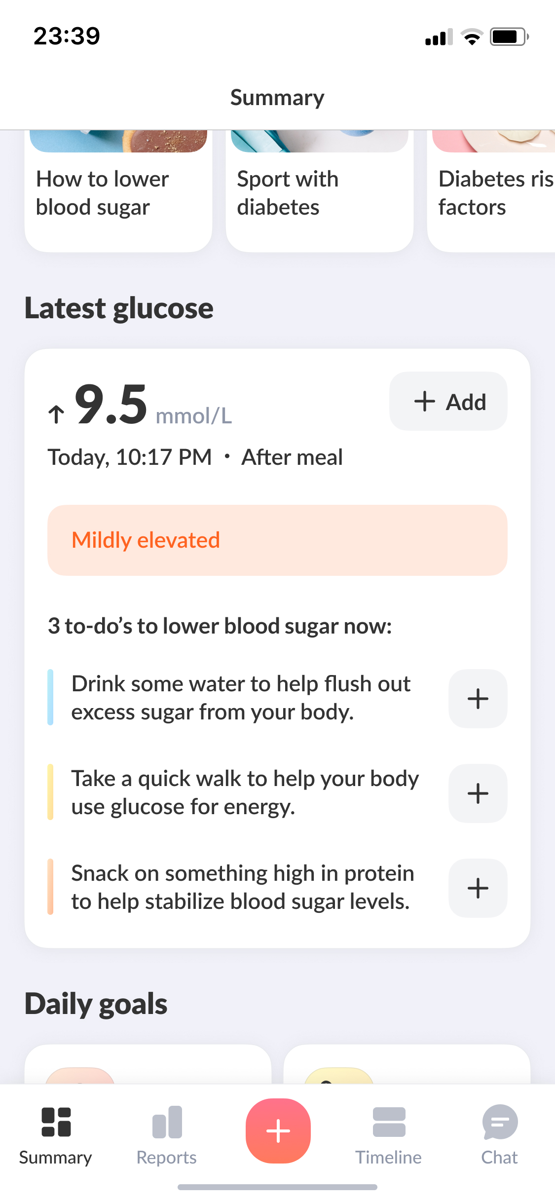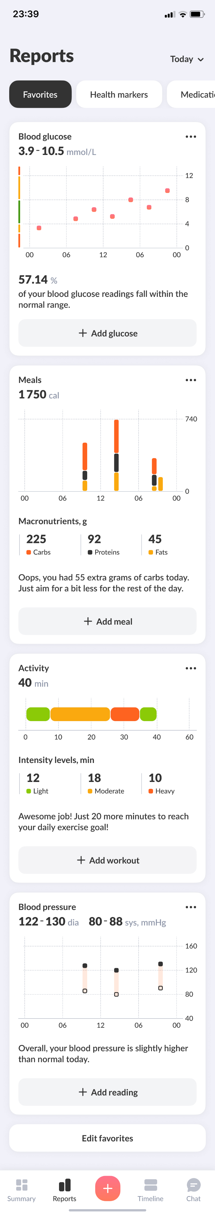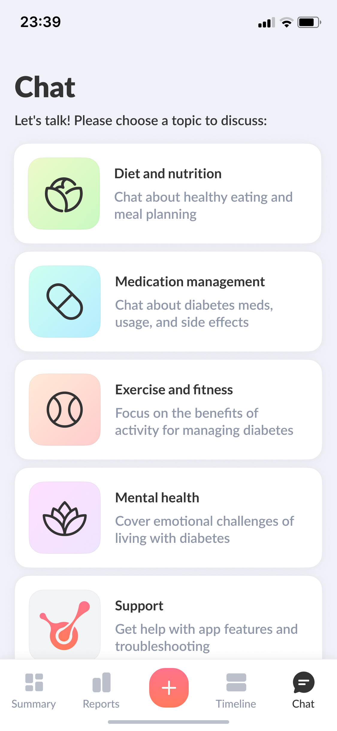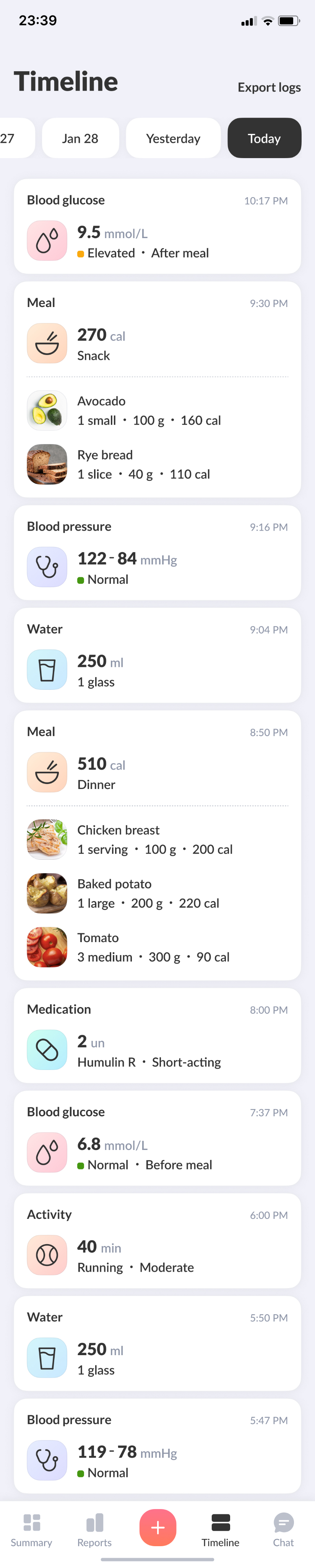 Biolink Health is a mobile app designed to support people with type 2 diabetes in managing their condition. It offers a range of features including food and activity tracking, blood glucose logging, educational content, personalised tips, and access to expert consultations — all aimed at building healthy, sustainable habits.
