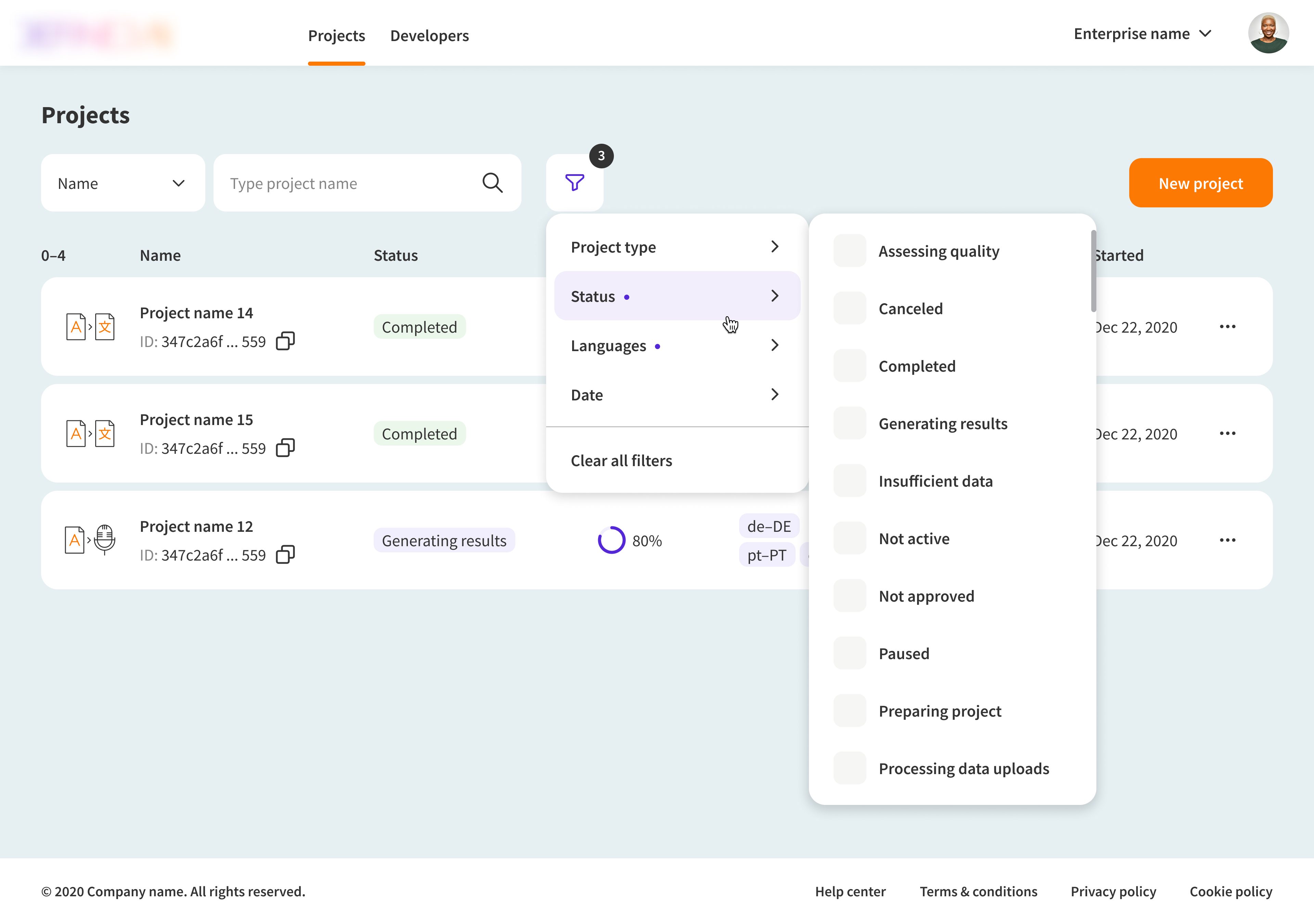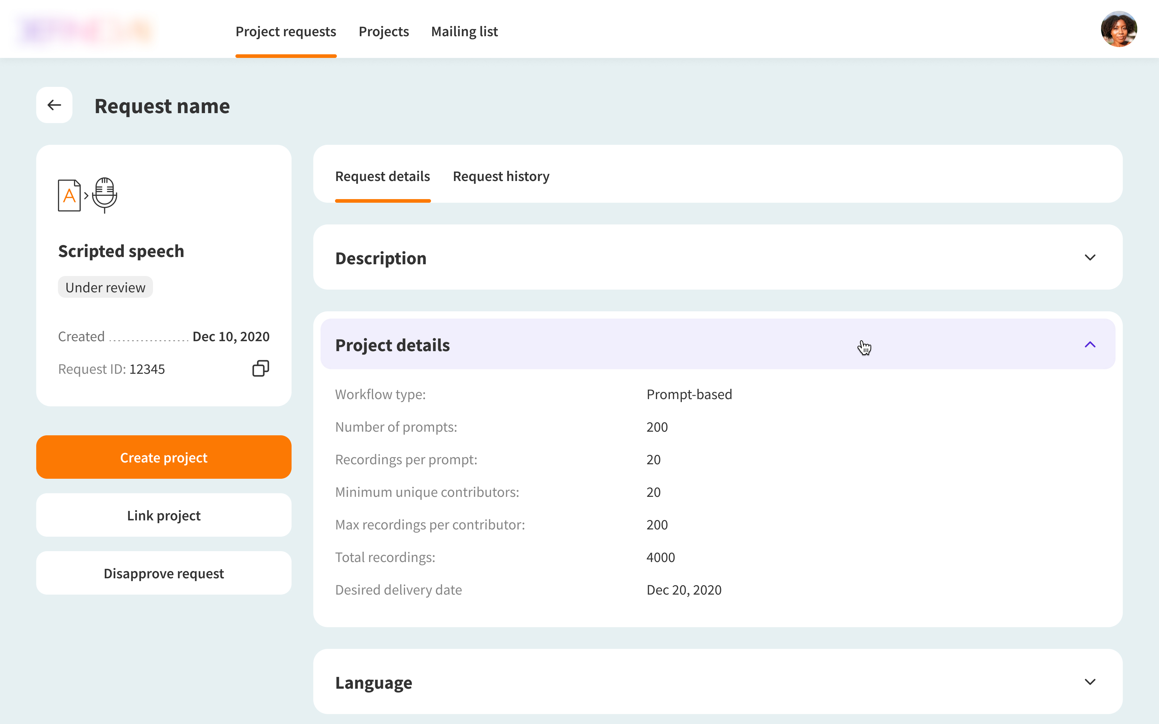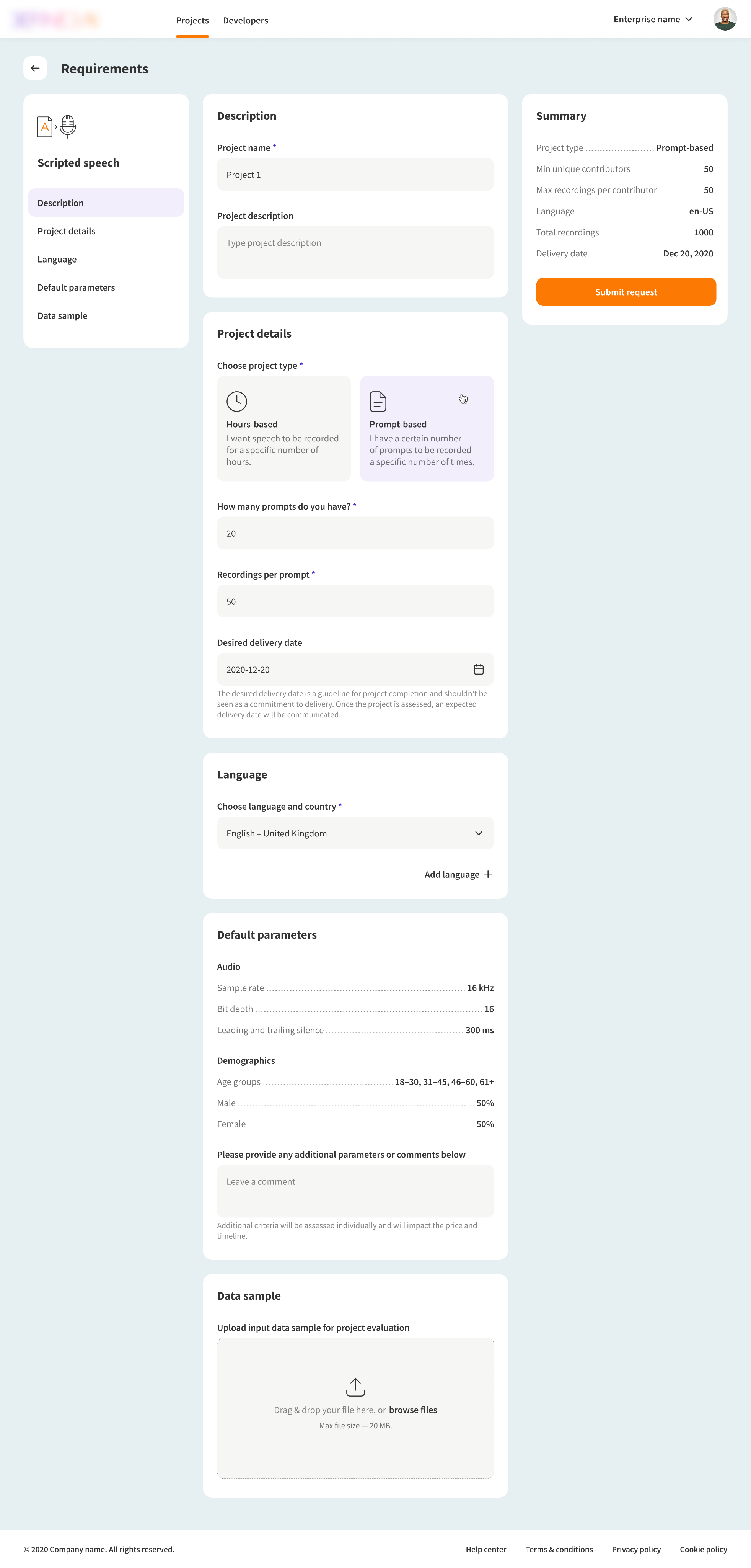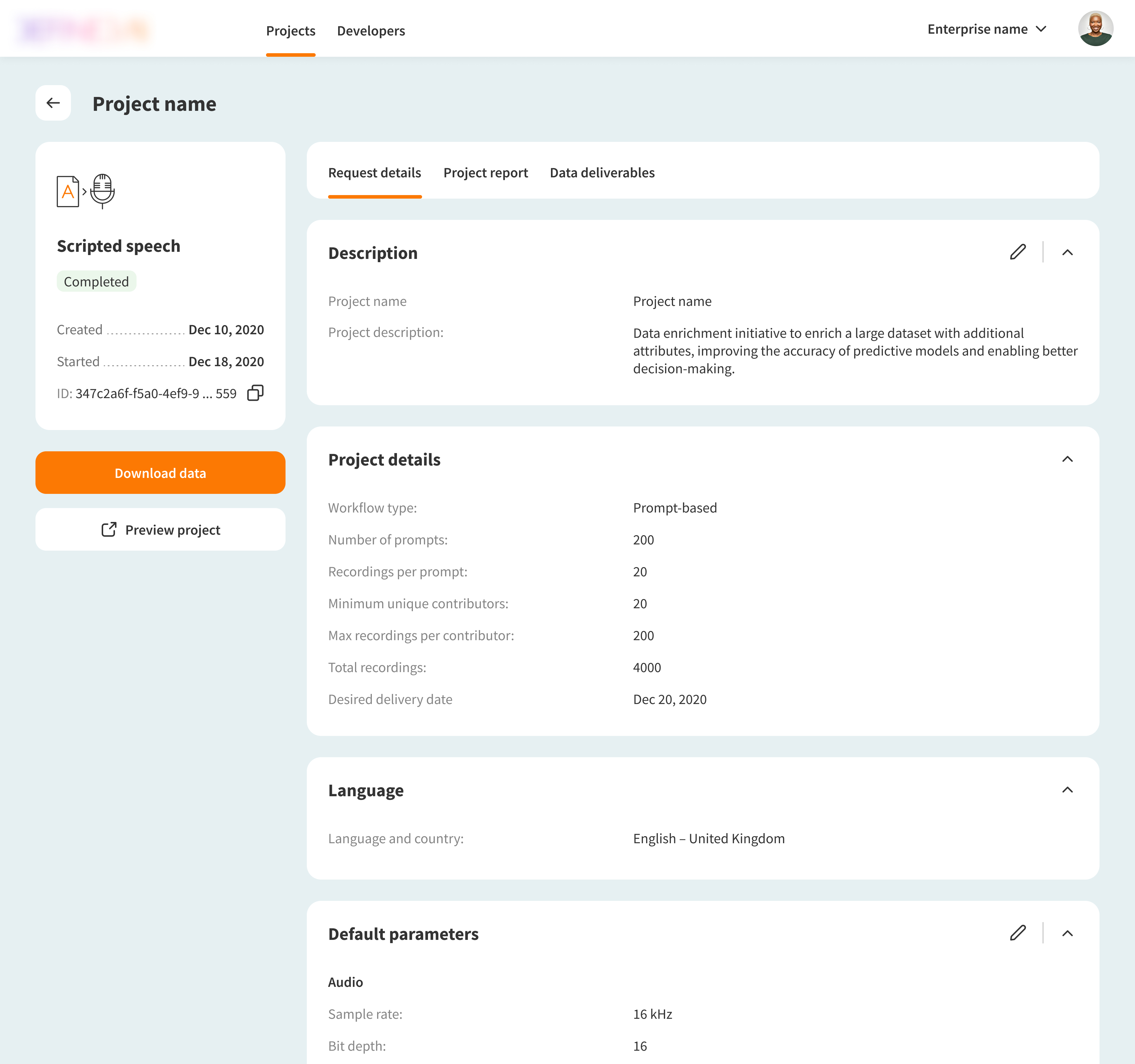 When I joined the team, there was a need to automate project setup. My role was to design a web solution that let customers submit training data requests, track their status, and access pre-processed datasets.