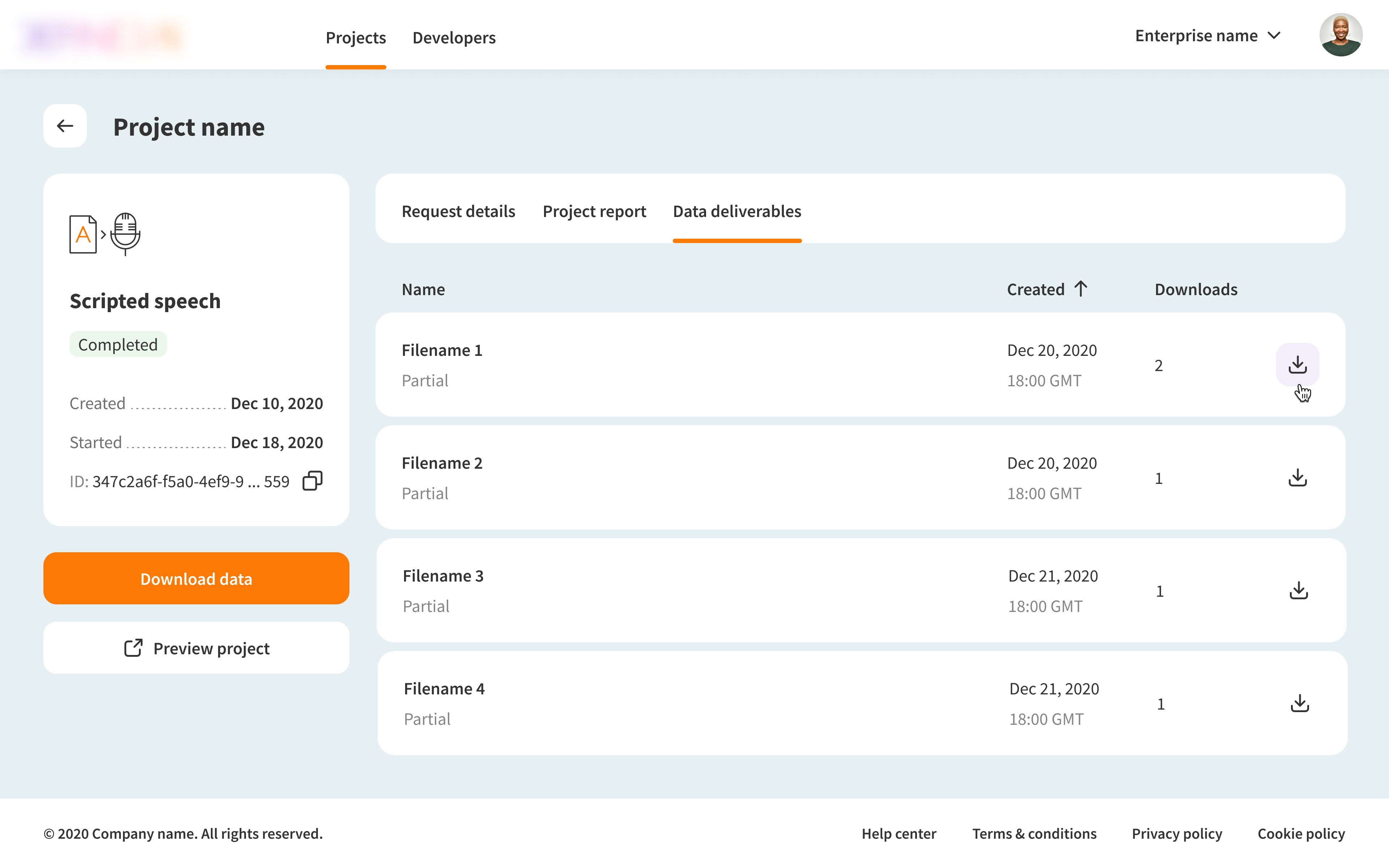 The company provided data enrichment services that turned raw datasets into high-quality, AI-ready data. Customers could upload files, monitor processing progress, and download the results.