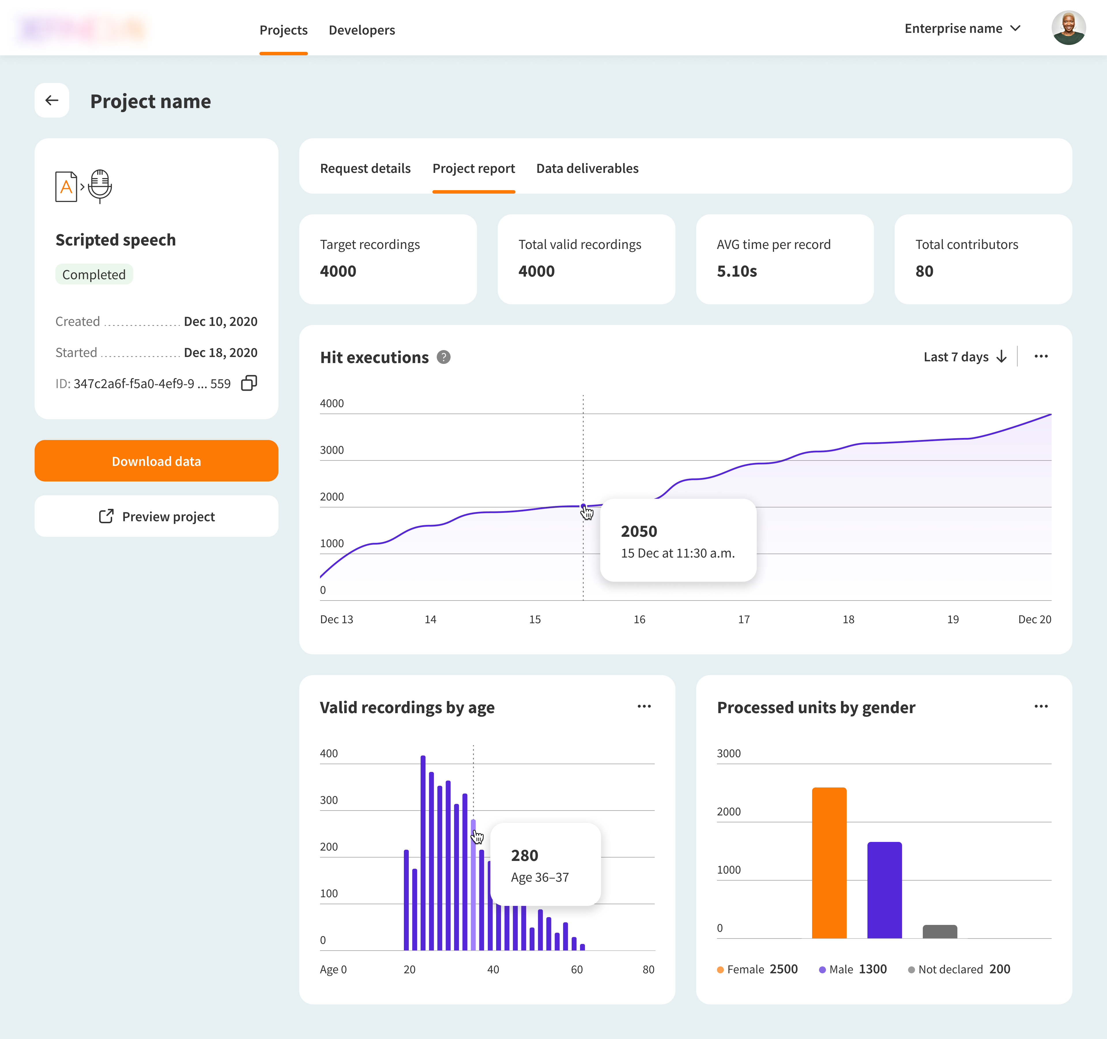 A platform for enterprise customers to request and buy enriched datasets for their AI models